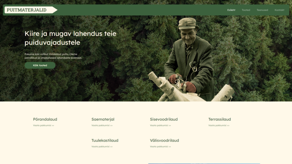 Koduleht millel viibite on PPP enda tehtud. Taolised, lihtsamad template lahendused suudame ise teostada ja neile saame pakkuda taskukohast hinda isegi alustavale ettevõtjale.